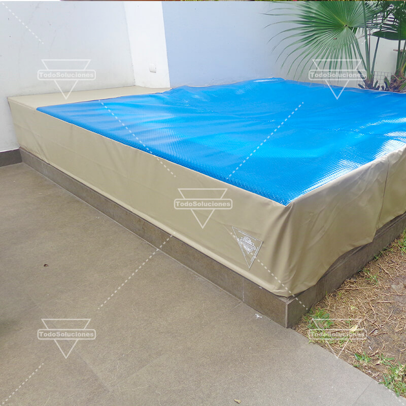 Diseño y fabricación a medida en diferentes opciones para cada necesidad: cobertores térmicos flotantes sobre el agua, protege y mantiene la temperatura del agua. Cobertores de Lona PVC, tensado y fijado en el perímetro de la piscina, protege la piscina vacía y llena, evita caidas accidentales de mascotas y niños pequeños. Tapas con estructura interna de madera tratada, forradas con Lonas, evita accidentes, mantiene limpia el agua, fabricada por piezas.